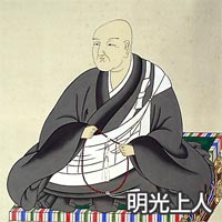明光上人は藤原鎌足公の直系で、父は藤原頼康、母は源義朝の娘であります。15才で出家し、慈鎮和尚の弟子となり、学徳一世に響きわたった比叡山の高僧であり、後、源頼朝の菩提寺鎌倉最宝寺の住職となられました。そのころ、祖師親鸞聖人は、念仏を弘めたことを咎(とが)められ、越後・国・府(現在の直江津)にご流罪になりました。